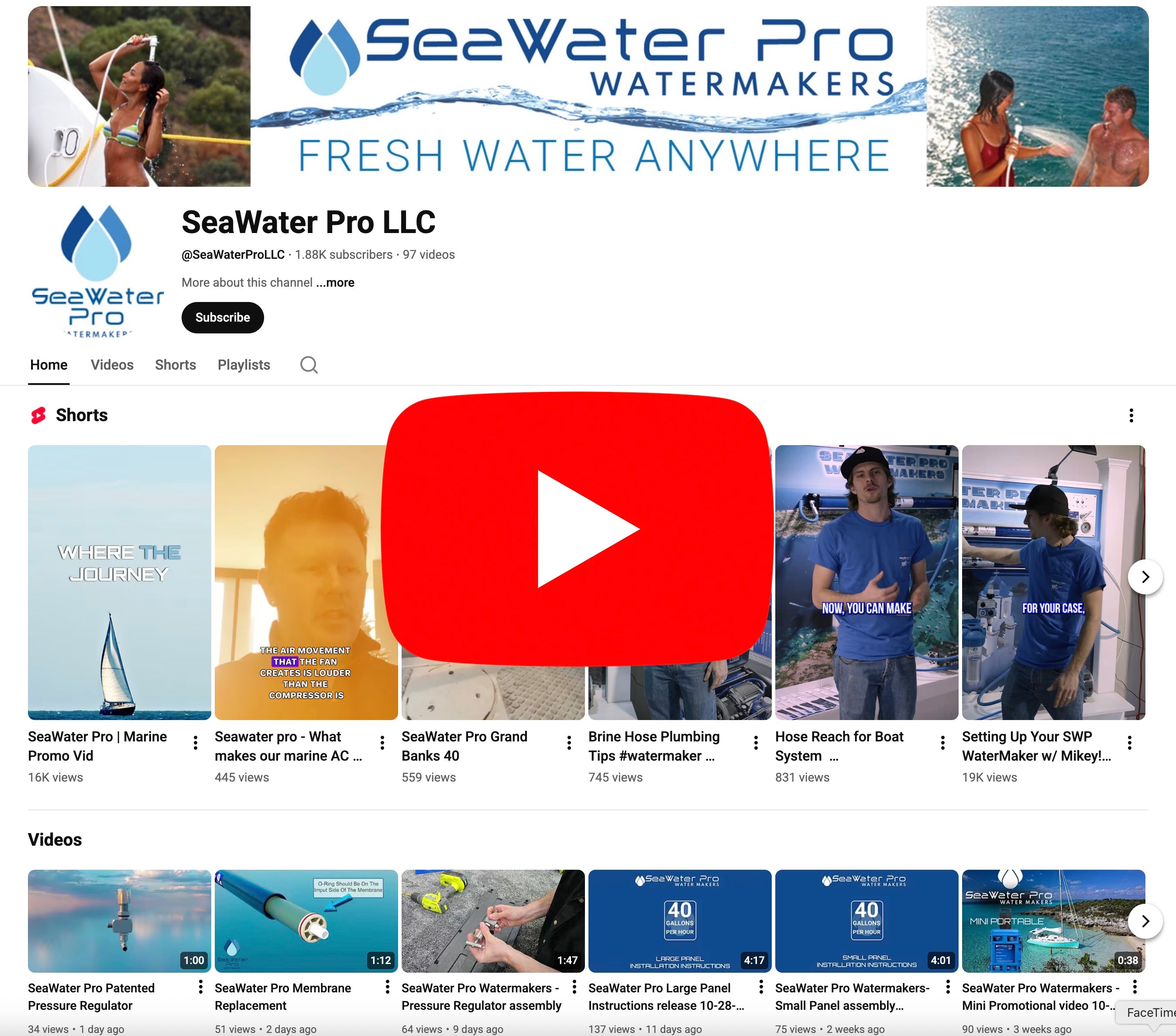 Thank you for choosing a SeaWater Pro Watermaker System! As the manufacturer and distributor, we place great importance on our product quality and customer service. Our collection of how-to videos for watermaker systems is designed to address all of your potential questions. Also be sure to download our regularly updated product manuals as needed! With our in-depth product knowledge, we are confident that our watermaker systems will meet and exceed your expectations.